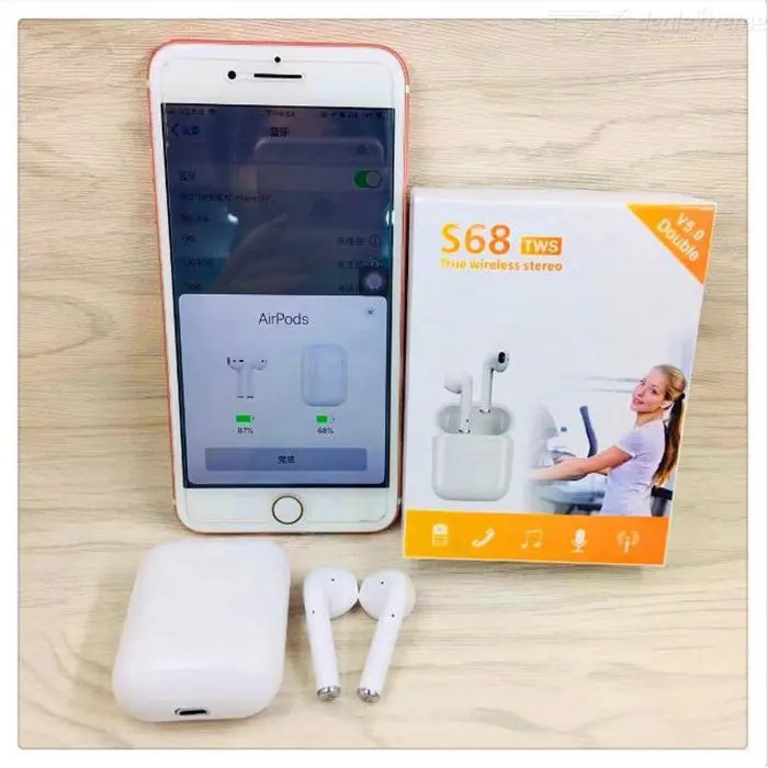Az S68 TWS 5.0 fülhallgató kicsi, formatervezett és fiatalos, stílusos eszköz vezeték nélküli zenehallgatásra, vagy telefonáláshoz.